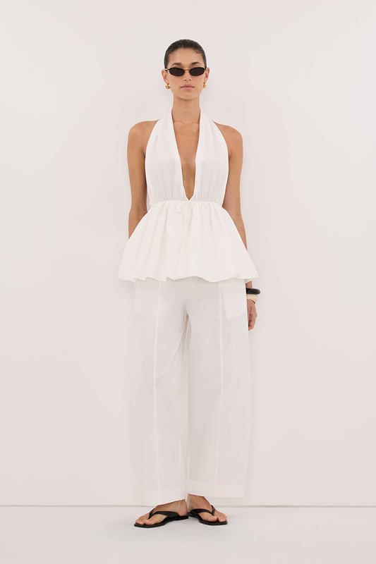 SCOUT WHITE COTTON BARREL LEG PANT