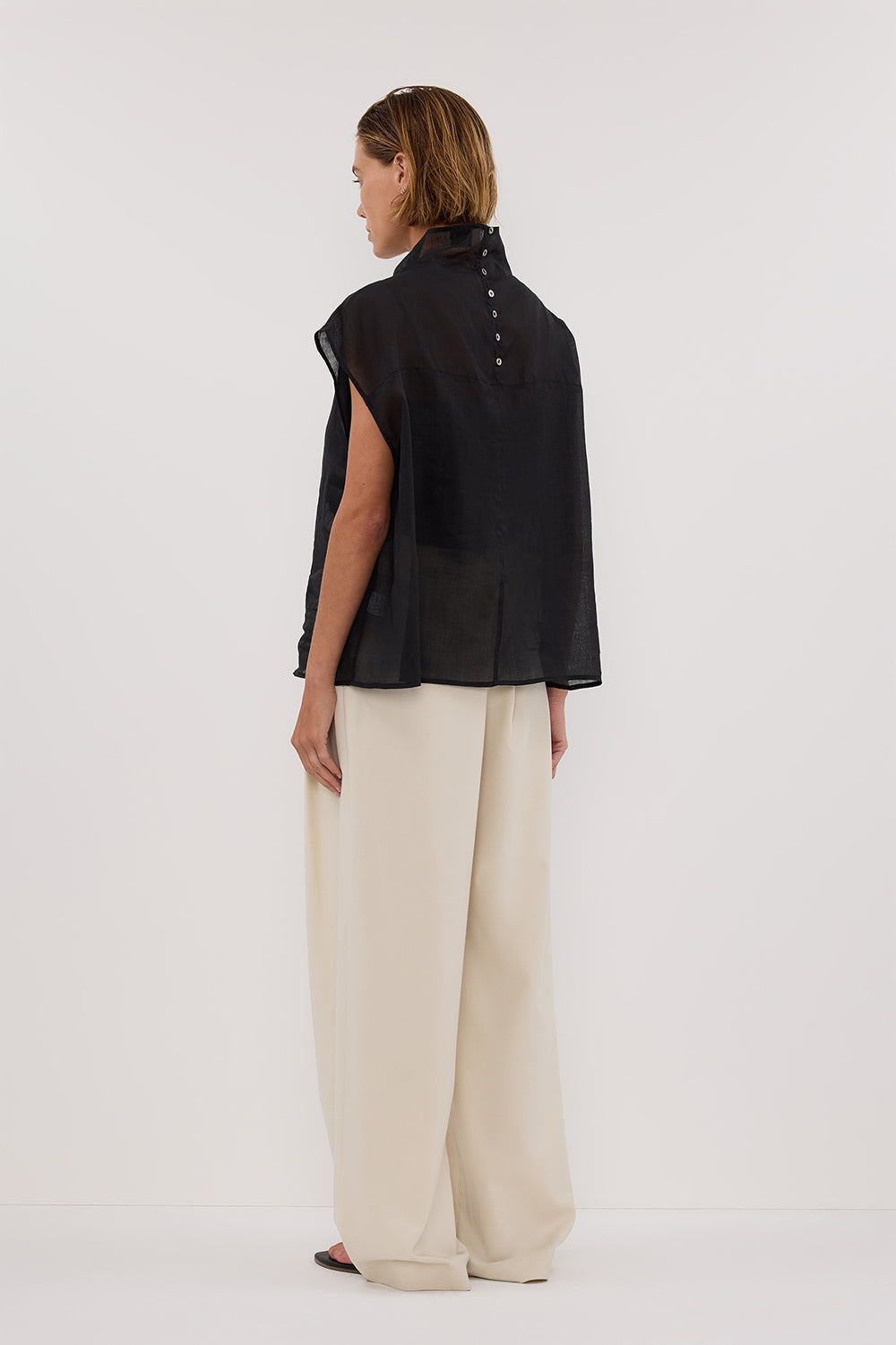 CARMEL BLACK RAMIE FUNNEL NECK TOP
