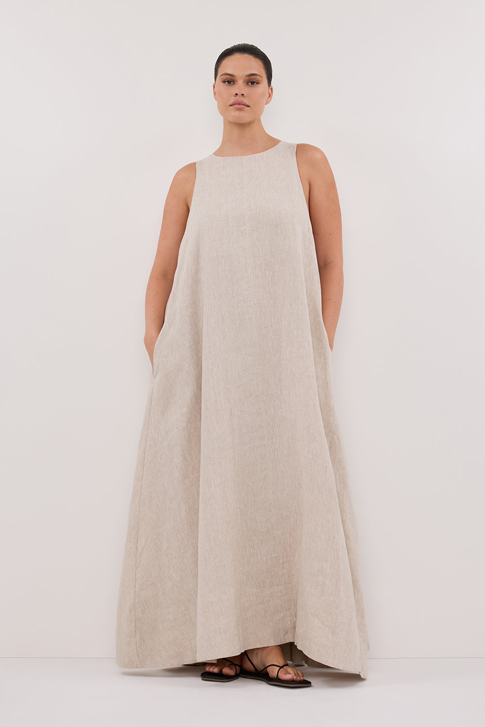 ISABELLE NATURAL LINEN MIDI DRESS
