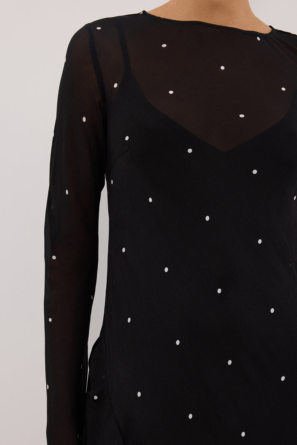 MELROSE BLACK SPOT LONG SLEEVE MAXI...