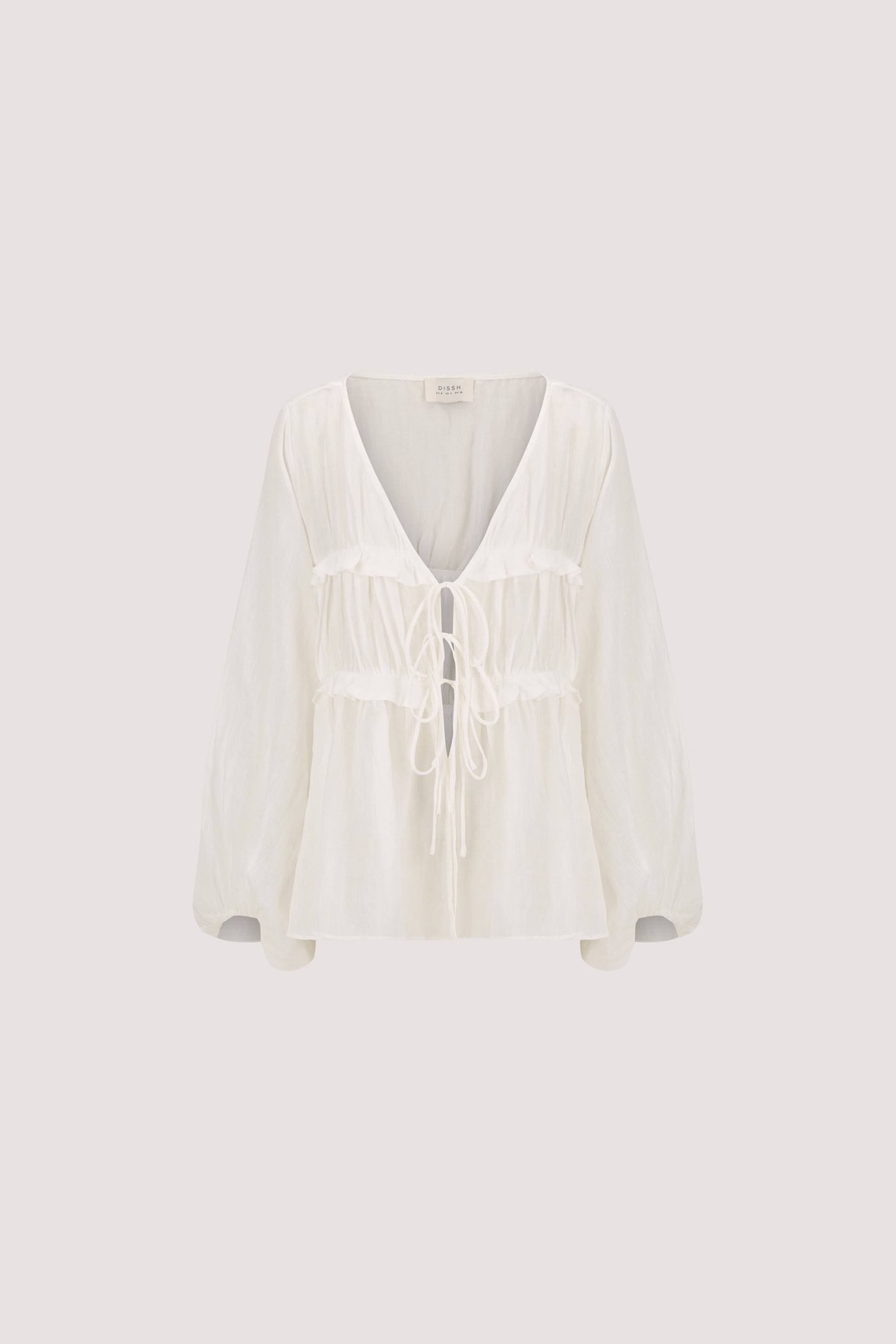 MILA WHITE RAMIE LONG SLEEVE FRILL...