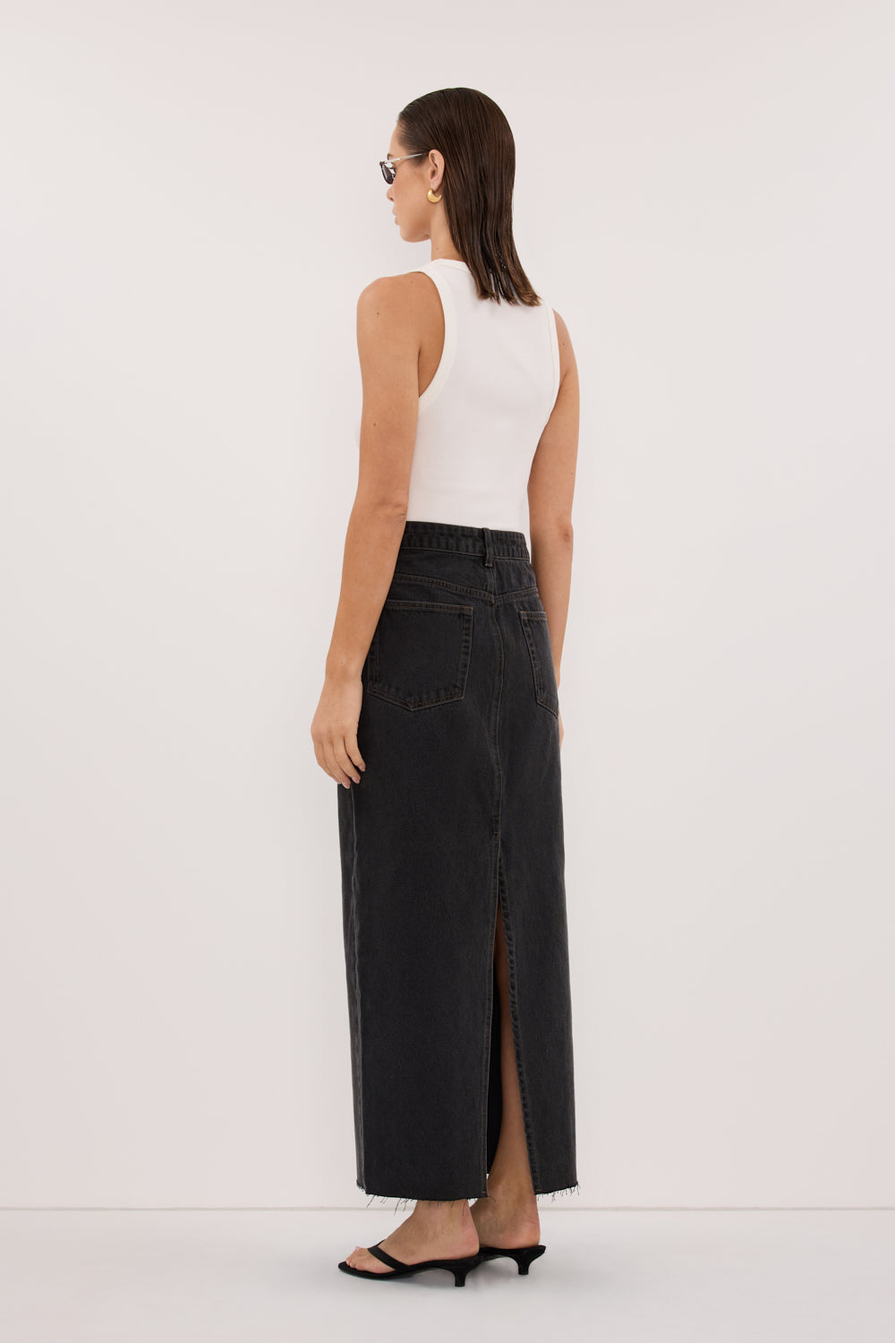MONROE BLACK RINSE DENIM MIDI SKIRT